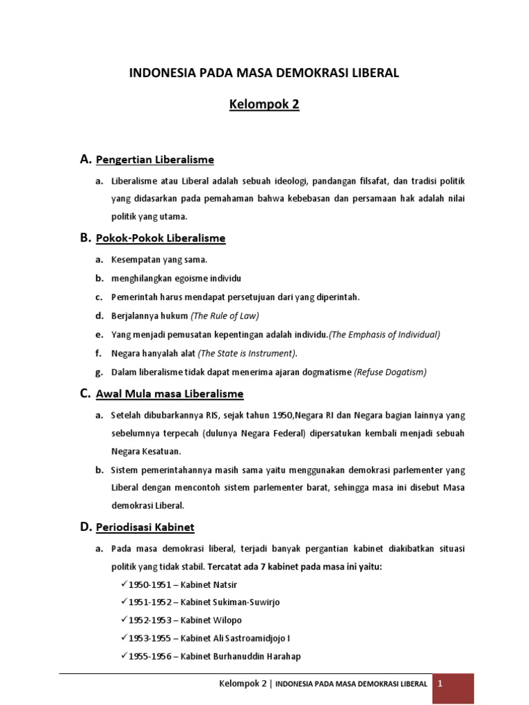 2Kabinet Natsir 6 September 1950-27 April 1951 Merupakan kabinet pertama yang memerintah pada masa demokrasi liberal. 3Kabinet Wilopo 3 April 1952 30 Juli 1953 Kabinet pada masa demokrasi liberal Sekali lagi Presiden Sukarno mencoba mengkoalisikan dua partai besar yang berkuasa saat itu yaitu Partai Masyumi dan PNI. Salah satu alasan Indonesia menggunakan sistem demokrasi liberal adalah.